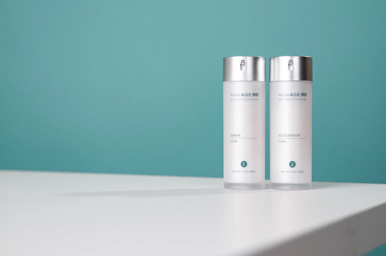 AnteAGE MD® is a professional-grade skincare line designed to accelerate skin healing, boost collagen production, and deliver visible rejuvenation results. Powered by stem cell–derived cytokines and growth factors, these medical-grade formulas work at a cellular level to repair and restore the skin. Available exclusively through licensed medical providers, the collection features the best-selling Serum and Accelerator system. Most users report smoother, healthier-looking skin with consistent use.