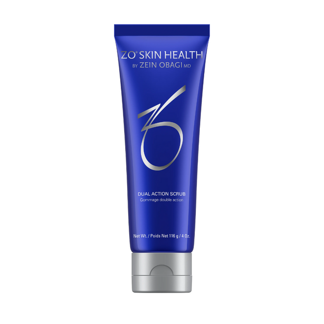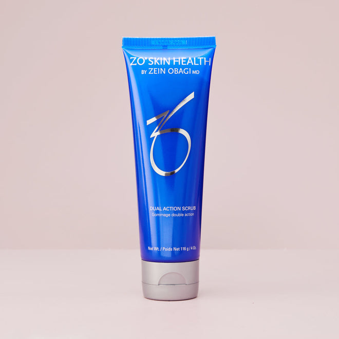 ZO Skin Health's Dual Action Scrub removes dead skin cells and excess surface oils. Targeting bacteria on the skin, Dual Action Scrub buffs away dead skin cells to keep the skin clean and the pores clear. This product is particularly effective for those with acne-prone skin or textural issues.